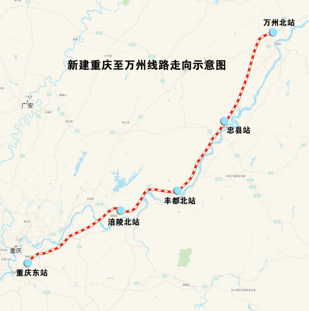 注:渝万高铁是我国“八纵八横”高铁网包(银)海、京昆通道的组成部分,线路起自重庆东站,途经重庆市南岸区、巴南区、涪陵区、丰都县、忠县至万州区,接入万州北站。
