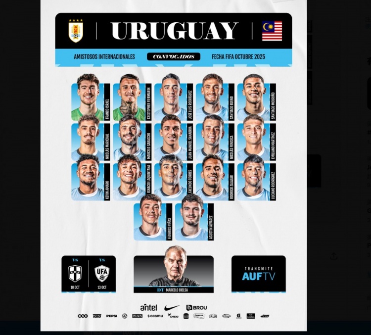 10月6日讯 为了迎接即将到来的国际比赛日,乌拉圭公布了新一期的国家队大名单,巴尔韦德、阿劳霍、本坦库尔等缺席。