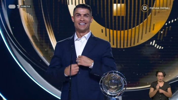 10月08日讯 在葡萄牙环球奖颁奖典礼上,C罗获颁萄牙环球声望奖,以表彰他整个职业生涯在俱乐部和国家队所做的贡献。
