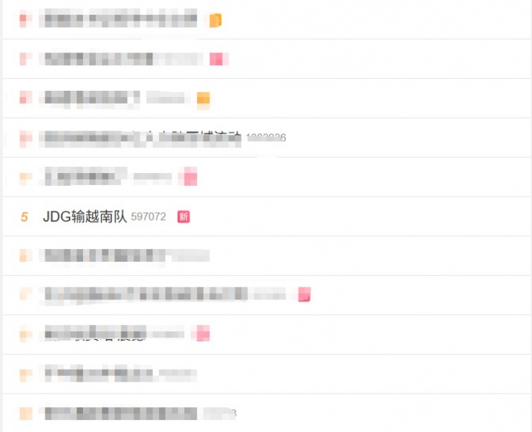 “JDG输越南队”这一词条迅速冲上微博热搜第五名。