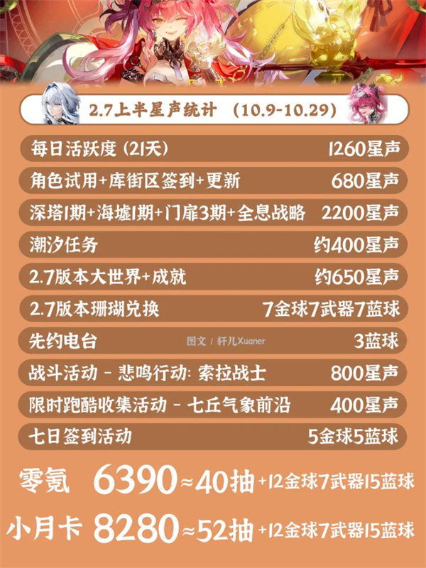 此外,大世界探索与任务部分的星声为估算值,实际奖励请以游戏内为准。