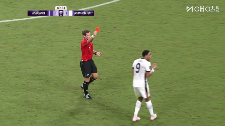 亚冠精英联赛东亚区第2轮,广岛三箭vs上海海港第90分钟,海港前锋古斯塔沃拼抢中犯规,主裁判果断直红将其罚下,VAR核实后维持了原判。