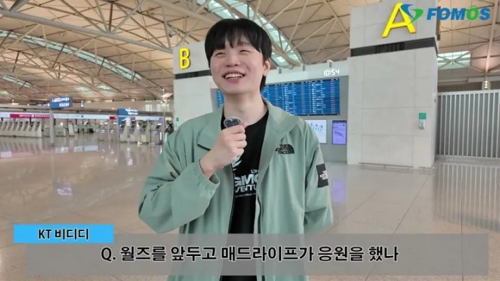 10月10日讯 KT全队出发前往中国参加2025全球总决赛,出发前KT中单Bdd接受韩媒FOMOS专访,原视频部分内容翻译如下: