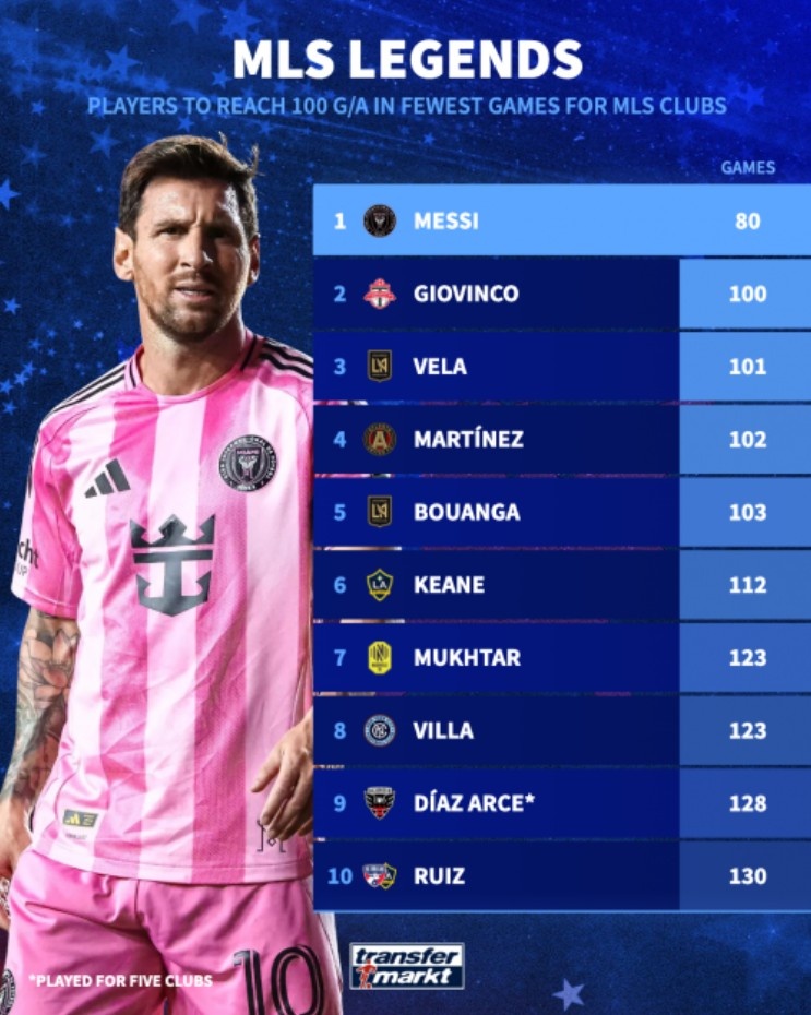 10月11日讯 离开欧洲足坛后,梅西加盟了美国大联盟的迈阿密国际,阿根廷巨星保持了良好的状态。在为迈阿密出战80场比赛的情况下,梅西已直接参与101球,他成为美职联俱乐部历史参与百球所用场次最少球员。