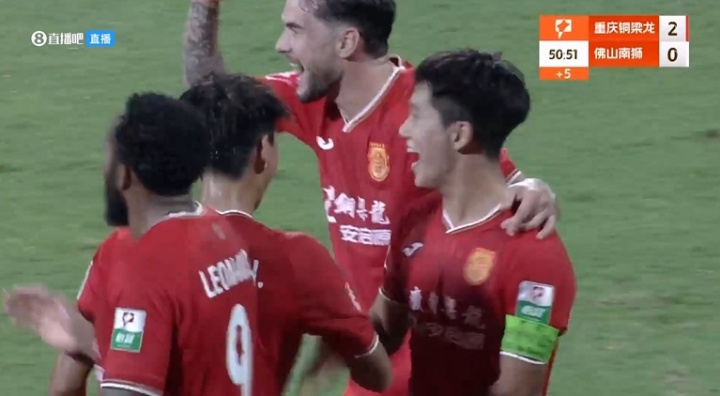 上半场补时阶段,莱昂纳多前场抢断后在底线位置救球传中,向余望头球破门为铜梁龙再入一球,目前铜梁龙2-0佛山南狮!