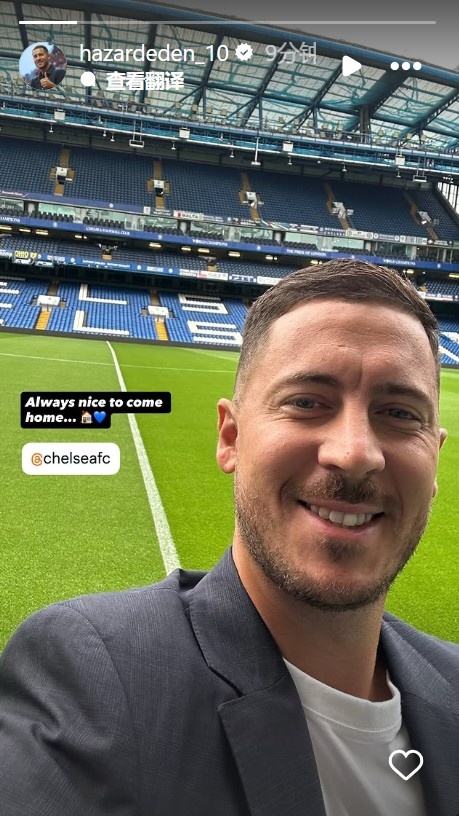 今晚,切尔西传奇队和利物浦传奇队在斯坦福桥进行慈善赛,34岁阿扎尔作为切尔西传奇队一员出战,他在社媒晒出重返斯坦福桥的照片,并配文:回家的感觉总是很棒。