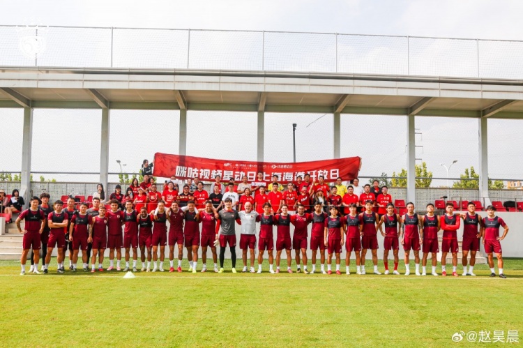 10月12日讯 上海海港俱乐部举行开放日活动,俱乐部新闻官赵昊晨晒出了球队与球迷合影的全家福照片。