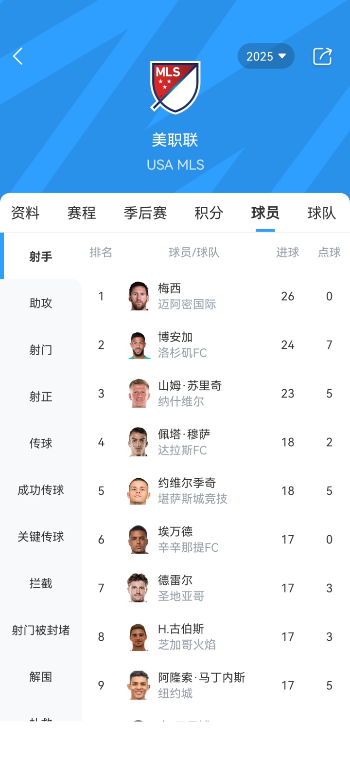 10月13日讯 昨日美职联,梅西2射1传,迈阿密4-0亚特兰大联。梅西本赛季美职联27场26球15助,目前领跑射手榜。