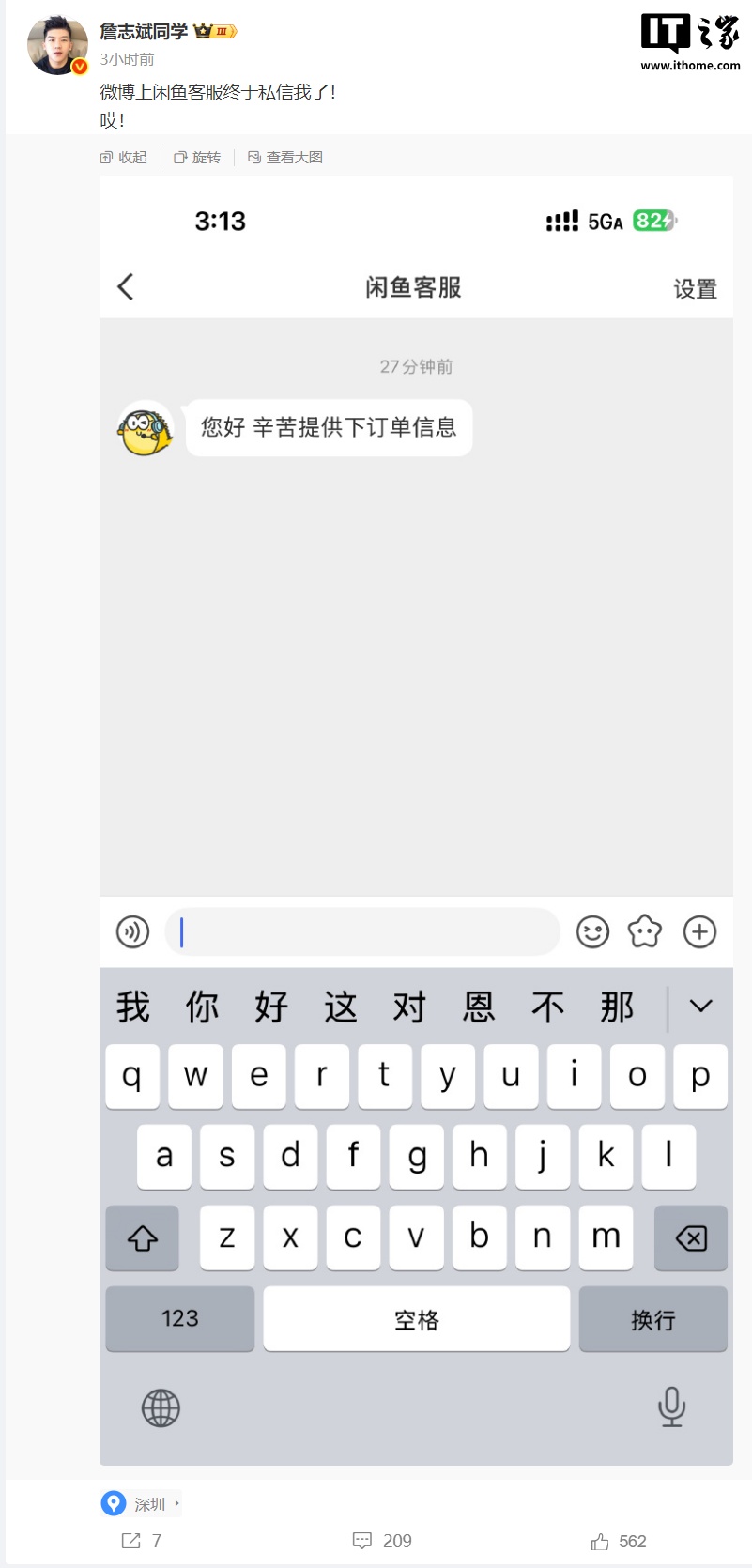 从该博主后续披露微博获悉,微博平台的闲鱼客服已私信联系博主,希望其提供订单信息。不过该博主已委托律师起诉。