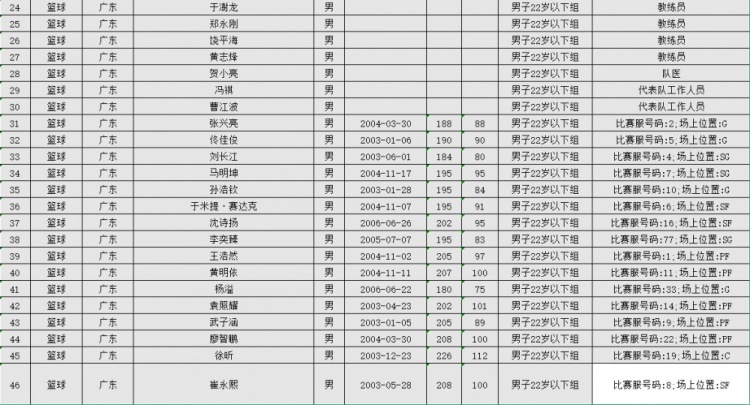 而在成年组中,广东全运男篮众星云集,具体名单为:任骏飞、赵睿、徐杰、周鹏、杜润旺、沈梓捷、张皓嘉、胡明轩、刘传兴、李炎哲、焦泊乔、黎伊扬、王睿泽、张文逸、张昊和贺希宁。