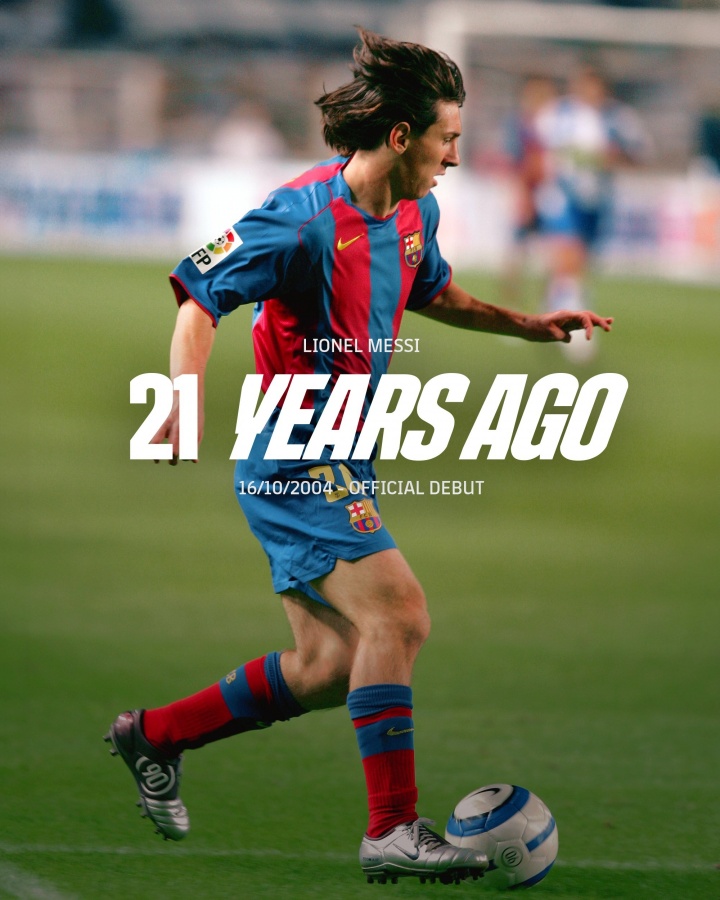10月16日讯 2004年的10月16日,梅西迎来巴萨一线队首秀,今日巴萨官推发文纪念了这一重大时刻。