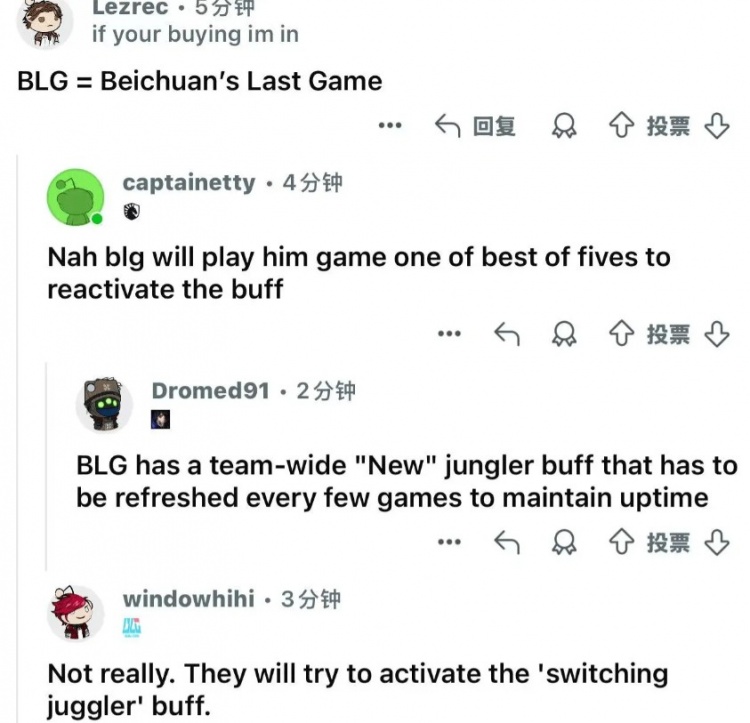 -BLG有一个"新"打野的队伍增益,需要每隔几场刷新一次才能持续保持效果。