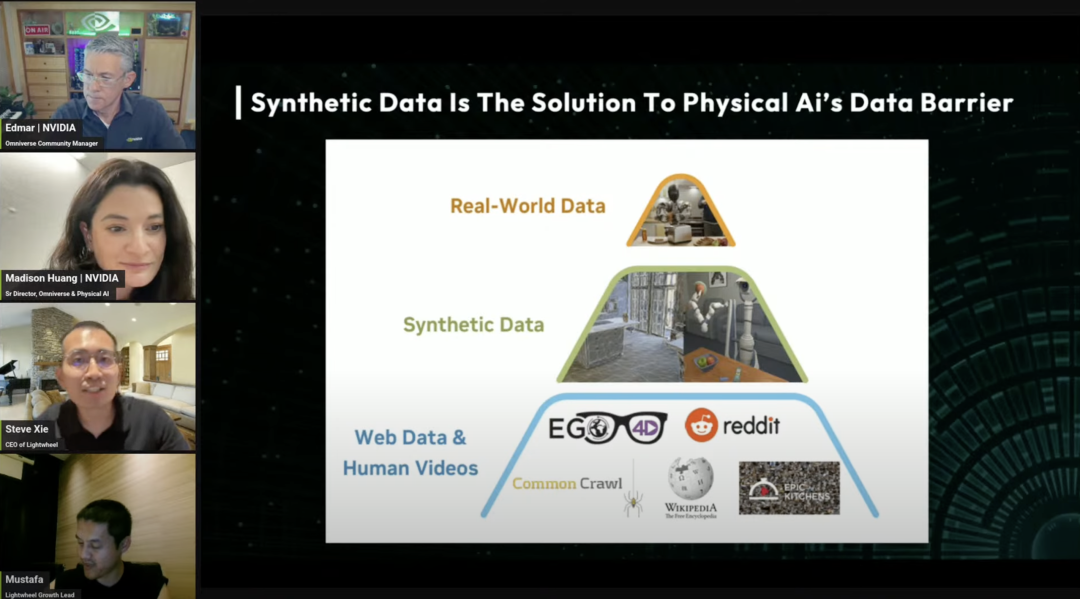 这不,黄仁勋女儿 Madison Huang 首次公开亮相直播访谈节目,作为英伟达 Omniverse 与物理 AI 高级总监,与光轮智能 CEO 谢晨,以及光轮智能增长负责人穆斯塔法一起,对“如何缩小机器人在虚拟与现实之间的差距”展开深刻探讨。