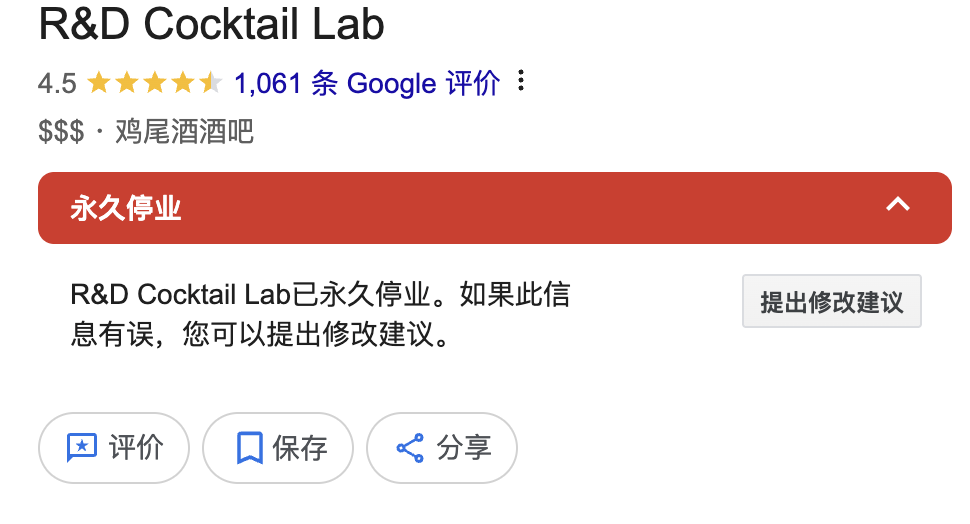 据悉,这家酒吧屡获国际大奖,并曾入选亚洲 50 佳酒吧,不过目前谷歌地图显示该酒吧已经永久停业。