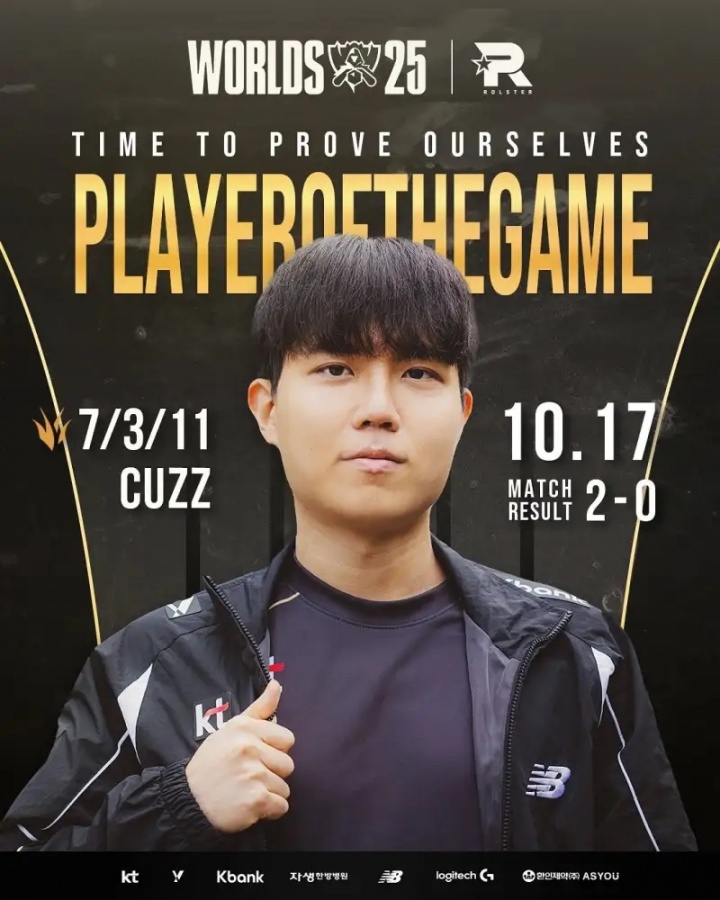10月17日讯 在今日的S15瑞士轮比赛上,KT击败TES晋级八强,赛后KT发文:"KT 3-0全胜成为首支晋级到2025全球总决赛淘汰赛的队伍。不会满足于当前的胜利,要去往更高的地方。淘汰赛见吧。"