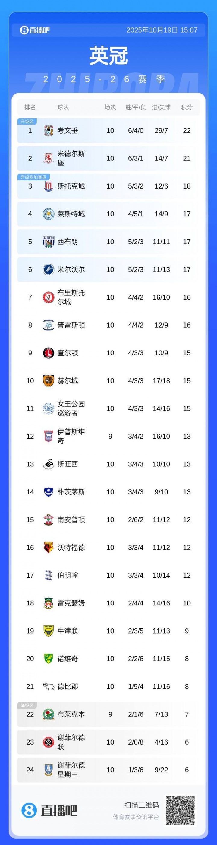10月19日讯 英冠第10轮比赛,考文垂2-0击败布莱克本,新赛季10轮不败,继续领跑积分榜。