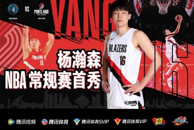 参与杨瀚森NBA常规赛首秀,惊喜福利送不停,到场观赛即有机会参与互动,赢取杨瀚森专属T恤以及由腾讯提供的NBA球队周边产品!