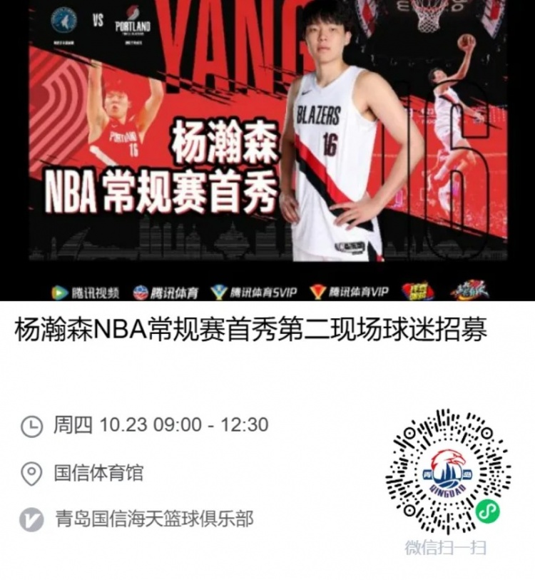 ? 报名方式:扫描下方二维码,加入青岛国信球迷联盟,锁定你的席位!