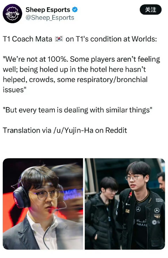 Mata回应T1比赛失利:我们还没完全恢复,有些队员感觉不太舒服