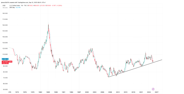 尽管如此,美元指数(DXY)继续保持多年支撑位,这是一个值得关注的潜在拐点。