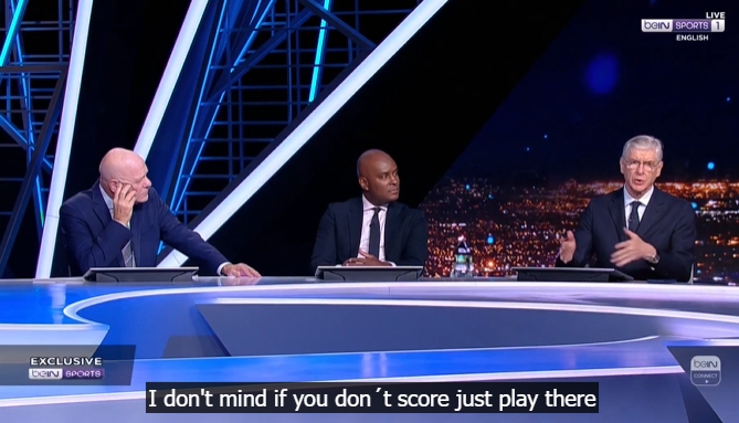 解说嘉宾们首先谈到登贝莱从边锋到射手的转变,温格说:“亨利进球比登贝莱早得多,但一样的是,亨利也认为自己不是一个进球者(goalscorer)。