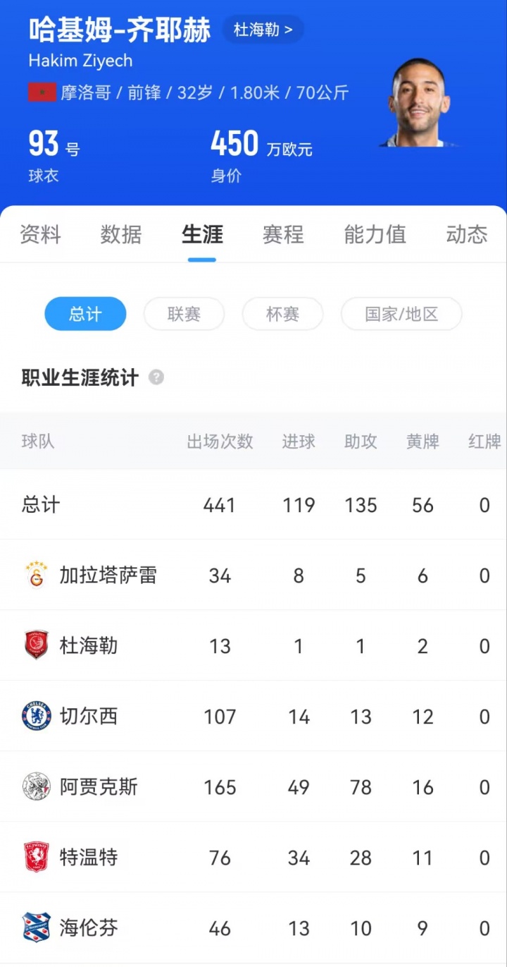 齐耶赫今年32岁,生涯曾效力切尔西、阿贾克斯等队。上个冬窗,他从加拉塔萨雷加盟卡塔尔球队杜海勒,今夏成为自由身。