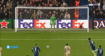 本场比赛第45+4分钟,埃斯特旺禁区右侧拿球摆脱被对方球员推倒,主裁判判给切尔西点球,埃斯特旺主罚命中: