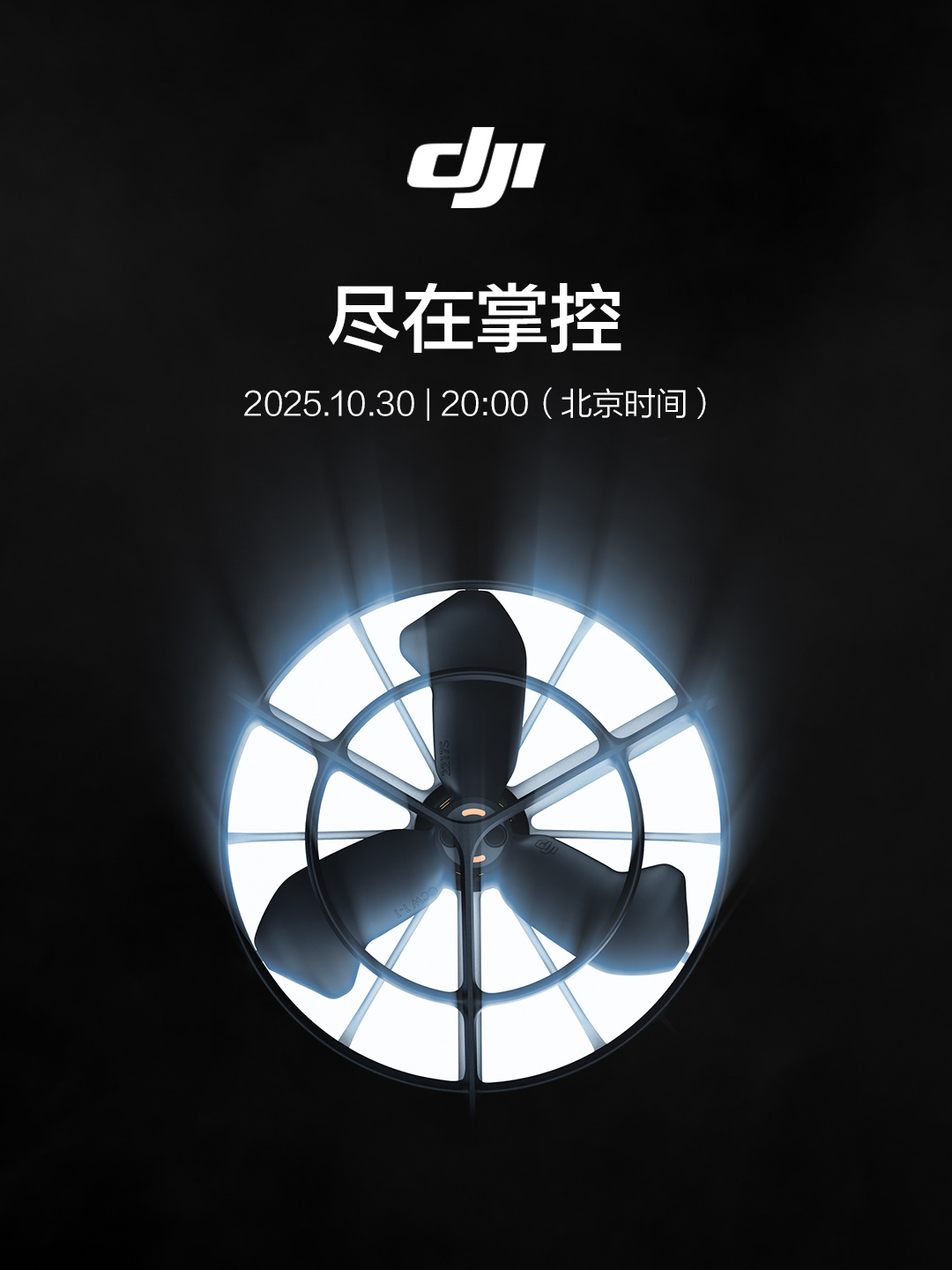 10 月 23 日消息,大疆今日官宣 2025 年 10 月 30 日 20:00 发布新品,宣传语为“尽在掌控”,宣传视频展示了一个风扇。