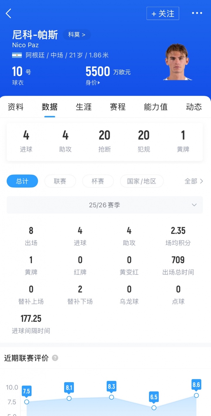 罗马诺在播客中说道:“帕斯天赋惊人,已经吸引了全欧洲的关注。热刺在去年就曾试图签下他,报价总金额高达7000万欧元。但科莫和皇马都拒绝了这份报价。要知道,尽管帕斯名义上归属科莫,但皇马有他50%的转会分成以及1000万欧元的回购条款。