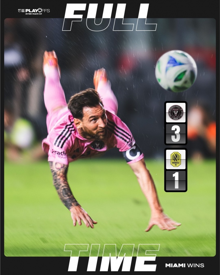 10月25日讯 美职联季后赛首轮第1场,迈阿密3-1击败纳什维尔。