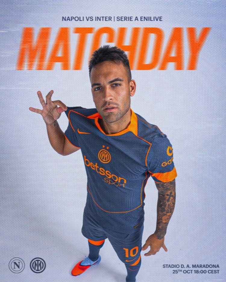 国米官方社媒发布了此役的海报,队内前锋劳塔罗单人出镜。