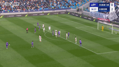 比赛第38分钟,哈达斯开出前场任意球,谢维军头球摆渡到中路,王秋明近距离的头球攻门击中横梁弹出!