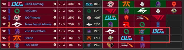 而BLG作为签运很好的队伍,没有遇到过LCK队伍,只击败了FNC和VKS,可VKS最终战绩1-3,FNC最终战绩0-3,两队累计战绩1-6可以说毫无含金量。
