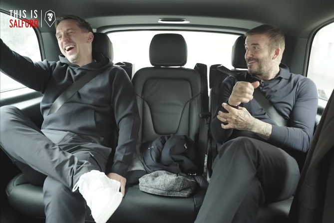 10月25日讯 作为英乙球队索尔福德城的联合股东,贝克汉姆和加里-内维尔拍摄了参观球队的Vlog。在视频中,两人讨论起了自己的球员养老金。