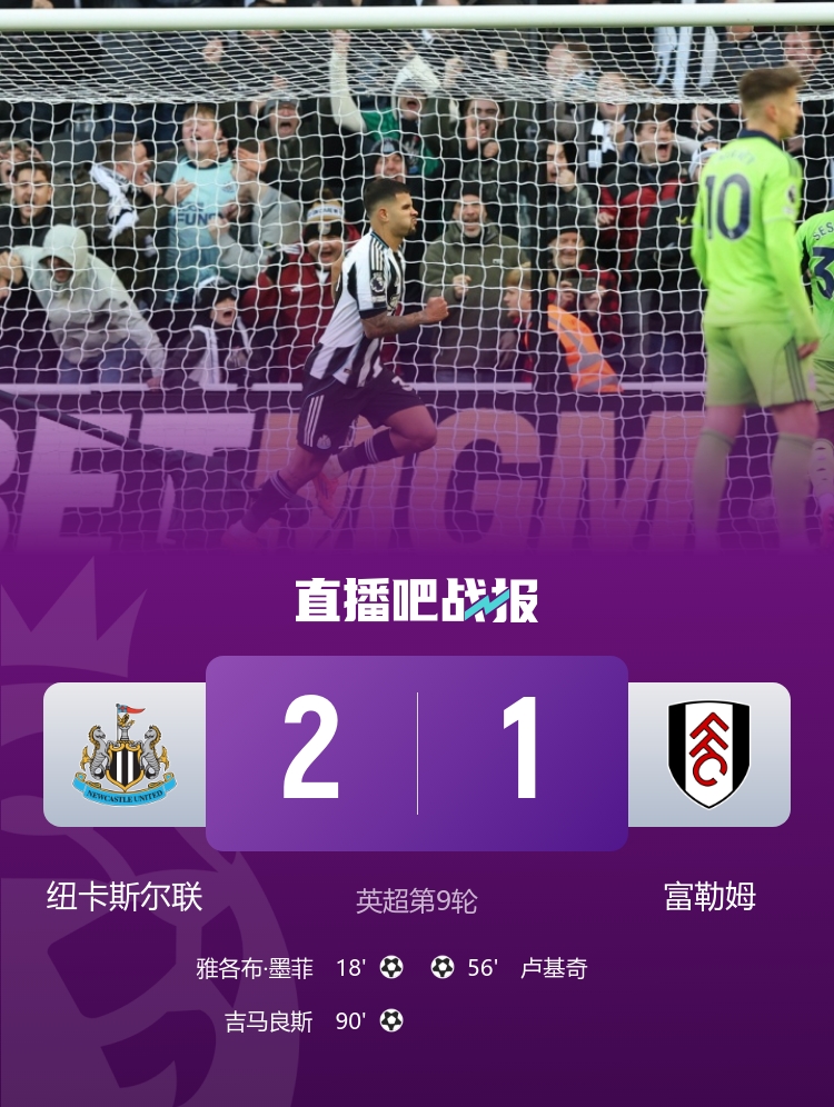 绝杀!纽卡2-1富勒姆 墨菲破门+中柱+失单刀吉马良斯推射制胜