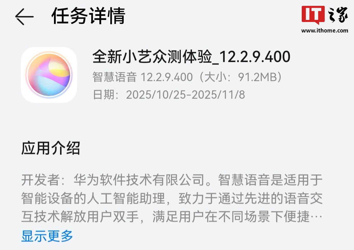 据此前报道,今年 8 月,全新小艺智能助手已开启了 12.2.6.402 版本众测升级。该版本的小艺提供“对话”和“发现”两大功能,并带来了和鸿蒙 HarmonyOS NEXT 5.0 / 5.1 系统版本相同的 UI 设计和功能模块,支持使用智能体和小艺技能等功能。