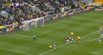 拉尔森主罚点球扳回一球,狼队1-2伯恩利。↓