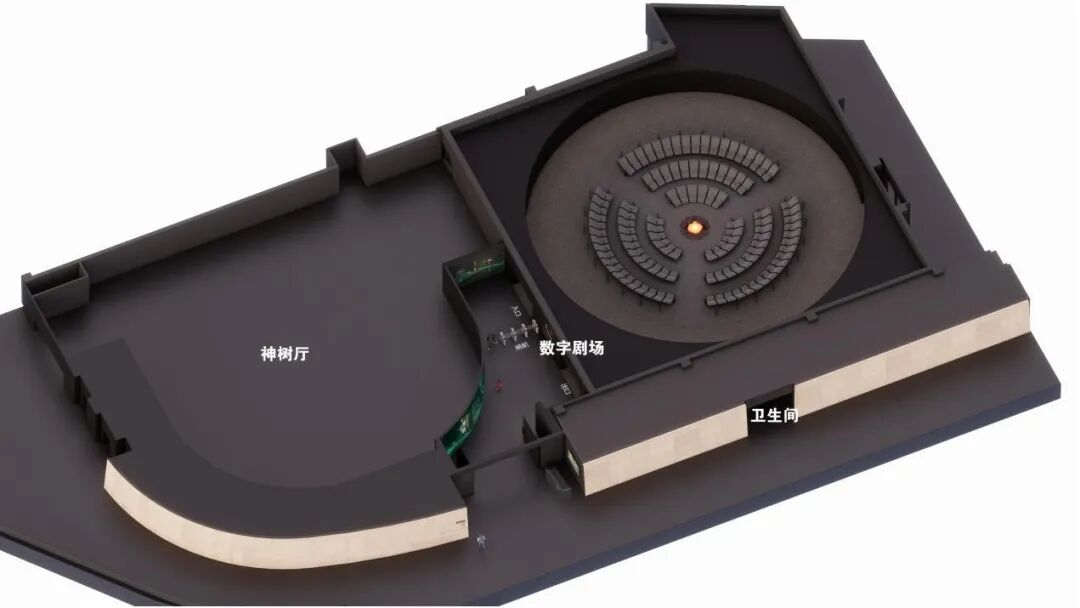 三星堆博物馆介绍称,“天地回响”数字剧场是三星堆博物馆全新打造的可看、可听、可交互的博物馆数字化体验场景,是全国首创的“交互式全景声 LED 穹顶”体验空间。