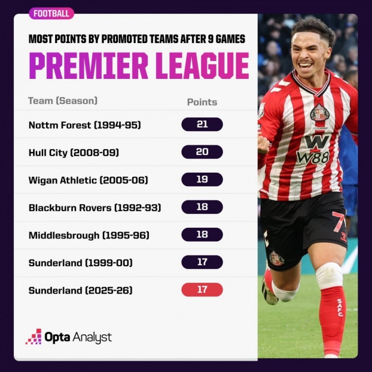 哪怕你是想象力出奇丰富的球迷,估计也不会在预测新赛季英超排名时,把升班马放在前列。这项赛事素来竞争激烈,既有 BIG6 豪门坐镇,也有不少新贵争夺欧战资格,对新球会来说的确很 “不友好”。不过桑德兰却 “不这么想”,上赛季他们在英冠(二级赛事)打出佳绩成功升级后,本赛季更进一步,9 轮战罢位列前四,着实令人大跌眼镜,黑猫是真不好惹!