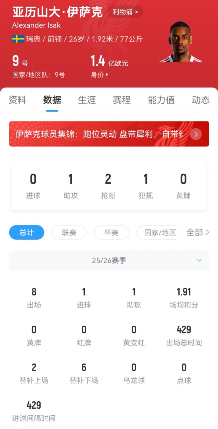 10月28日讯 伊萨克夏窗截止日以创英超记录的转会费加盟利物浦,但他至今的表现却不如预期,球队近期也整体状态不佳,已经在联赛4连败。曼联名宿萨哈在节目中表示:伊萨克是被身体状态拖了后腿,而他只需要重拾信心。