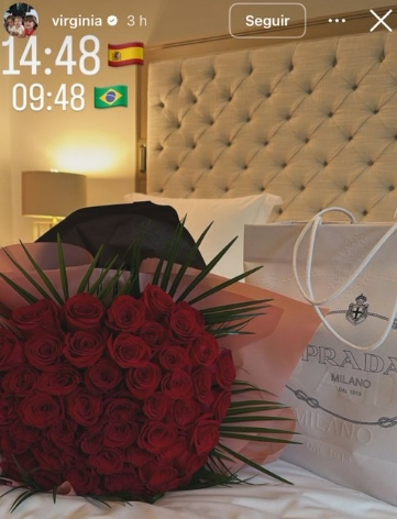 10月28日讯 皇马边锋维尼修斯近期陷入国家德比被换下时情绪爆发的争议中,但他在情场上可谓春风得意:他在社媒晒出与女友弗吉尼亚的甜蜜合照,为女友营造了浪漫的鲜花氛围。