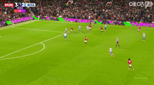 在曼联4-2布莱顿的比赛中,姆伯莫梅开二度帮助球队取胜,以下是他的两粒进球: