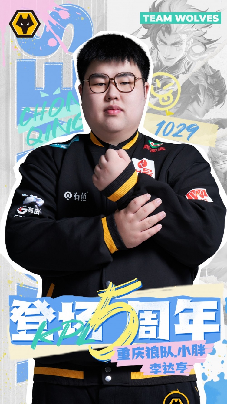 10月29日讯 狼队官方发文,祝贺小胖登场KPL5周年;