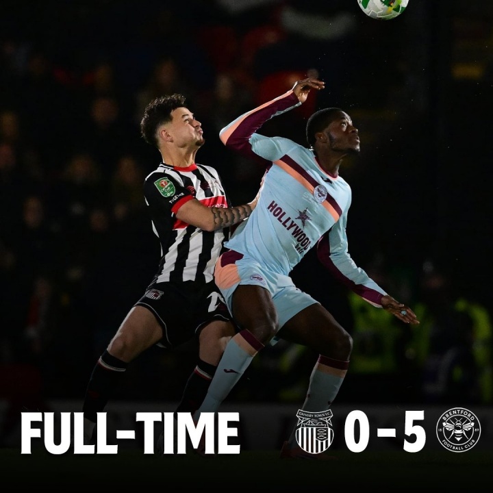 本场比赛布伦特福德由延森、刘易斯-波特、尼尔森、卡瓦略和科林斯5人完成破门。格林斯比此前在联赛杯中淘汰了曼联和英冠的谢周三,输给小蜜蜂后止步16强。