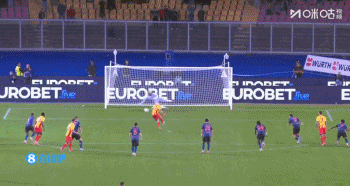 卡马达主罚点球射门被瓦尼亚神勇扑出。
