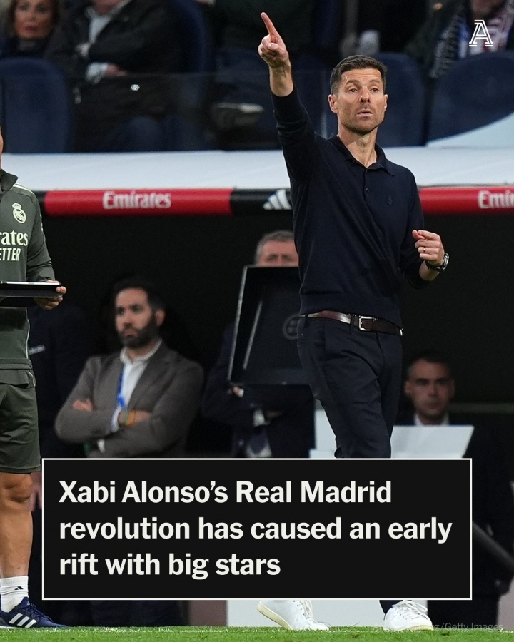 近几周来,阿隆索与皇马部分球员间的紧张关系日益加剧——多名一线队球员对他的执教方式以及他自夏季上任来推行的一系列重大改革感到不满,而背后的原因远不止维尼修斯国家德比被换下后爆发的冲突。