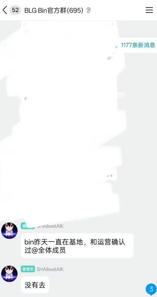 此后网传BLG bin官方群管理为Bin辟谣:和运营确认过 Bin昨晚一直在基地