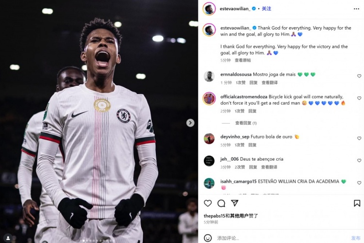 他也在赛后通过社媒晒出自己的庆祝照,并配文:“感谢上帝赐予的一切。非常高兴能赢得比赛并取得进球,一切荣耀归于祂。???”