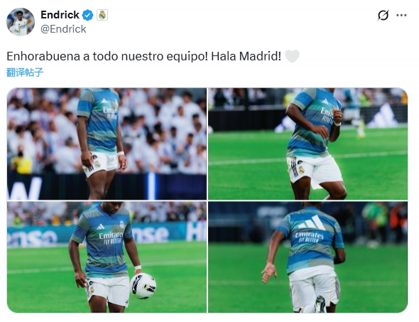 国家德比赛后,恩德里克写道,“祝贺我们全队!皇马加油!”措辞礼貌,却透着冰冷疏离,仿佛一个置身事外的旁观者。