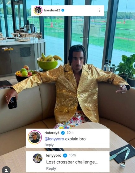 输的认罚!曼联后卫约罗训练中输掉横梁挑战,被迫穿“奇装异服”